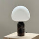 Deze tafellamp combineert een stevige marmeren basis met een gebogen glazen kap. De lamp is geschikt voor gebruik op een bureau, nachtkastje of bijzettafel en kan worden gebruikt met LED- of Edisonlampen.
